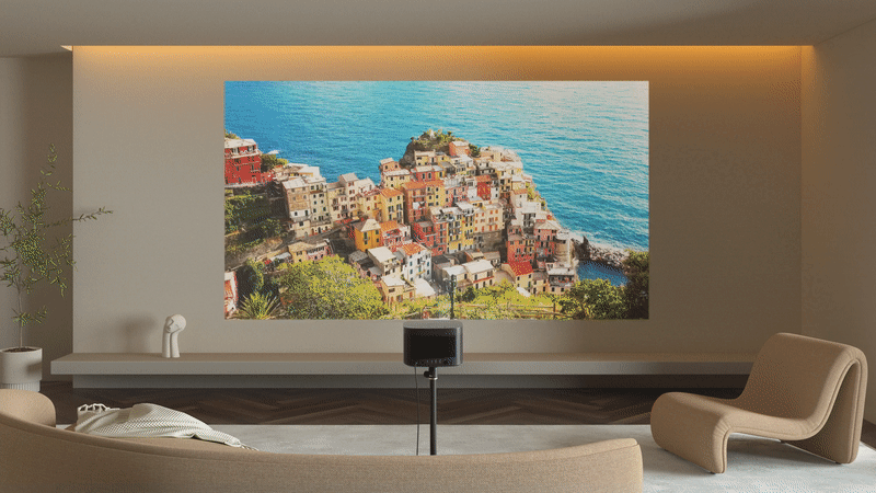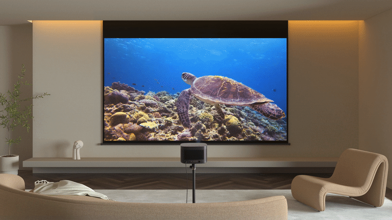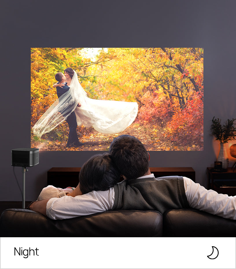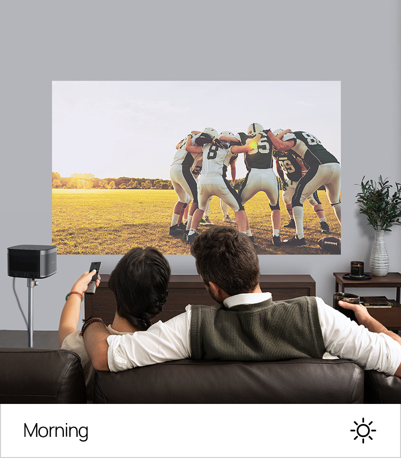 Проектор HORIZON обладает яркостью 1500 люмен ISO, что обеспечивает невероятную яркость в любое время суток, даже в помещениях с ярким внешним освещением.1 Наслаждайтесь четким изображением с реалистичными цветами, не беспокоясь о необходимости подгонять жилое пространство под дисплей проектора.