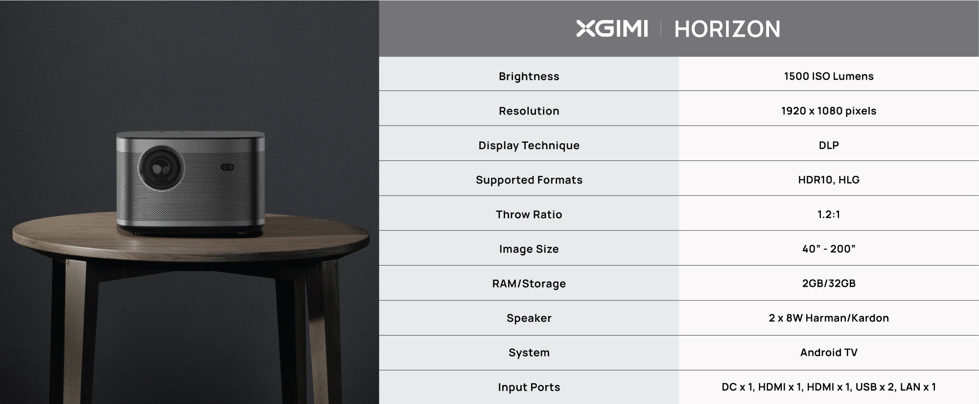 HORIZON обеспечивает кристально чистое качество изображения 1080p и гигантский 200-дюймовый экран. Благодаря такому высокому разрешению вы можете преобразить свои игровые вечера или любимые фильмы. Прошли те времена, когда приходилось жертвовать качеством изображения ради портативности и размера экрана. HORIZON — это полный пакет!